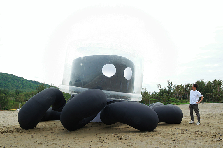 Giant Oil Octopus, 2025, balloon, 5 x 10 x 10 meters. Commission work for the 2024 Luo Shan Feng Arts Festival, Pingtung, Taiwan.
