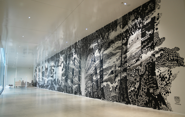 Woods, 2019, marker pen drawing on wall, 4 x 27 meters, 21st Century Museum of Contemporary Art, Kanazawa