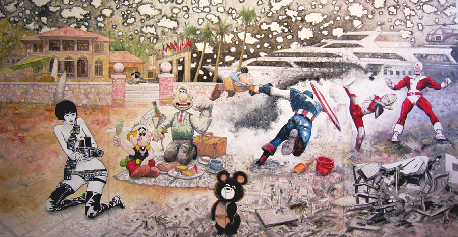 G-8 Meeting 2007, oil on canvas 227 x 444 cm (90" x 176") |
